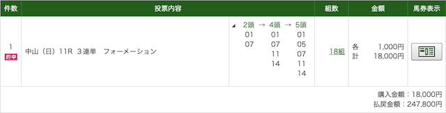 | 2024/01/14 | 京都11R | ◯ | 132,300円 |