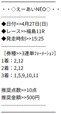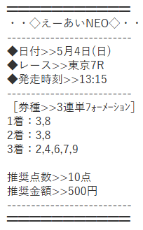 実際にえーあいNEOの予想を使い、その実力を検証していきたいと思います。