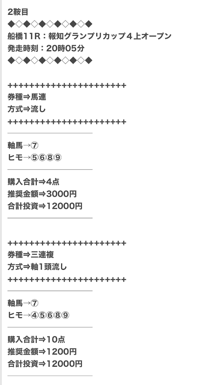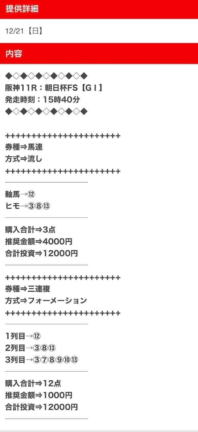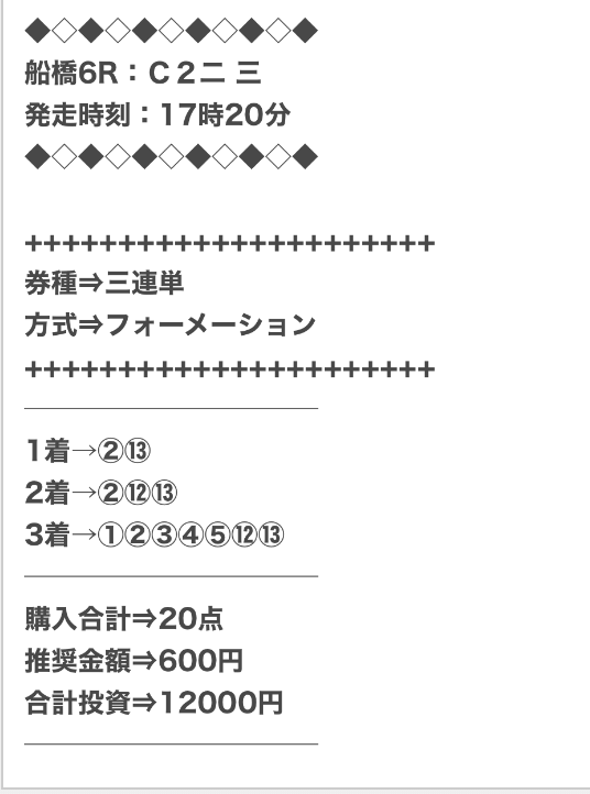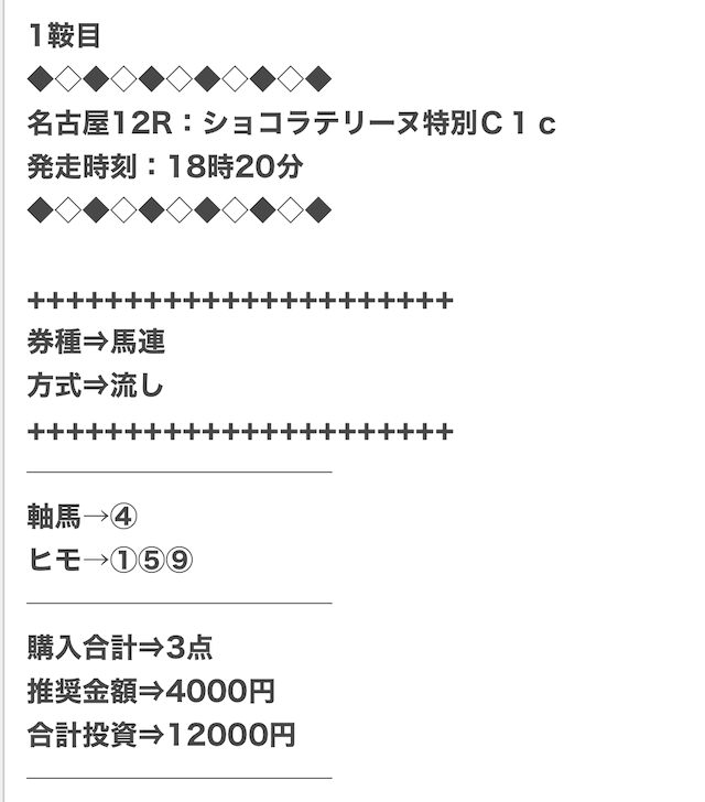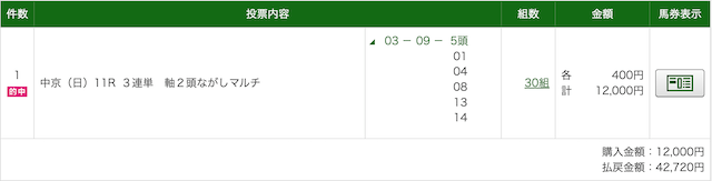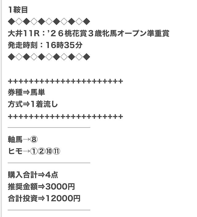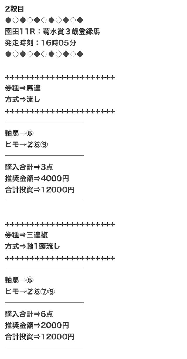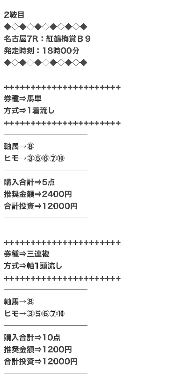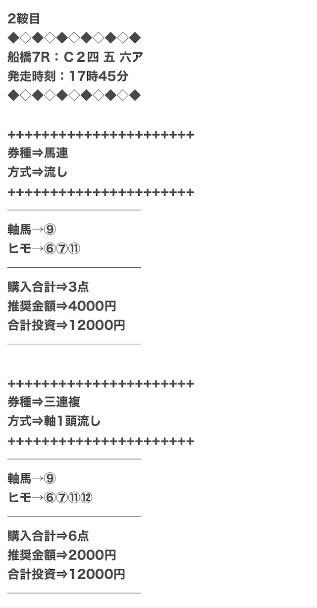1点2,000円で馬券の購入を推奨しているので、指示通りに購入しました。