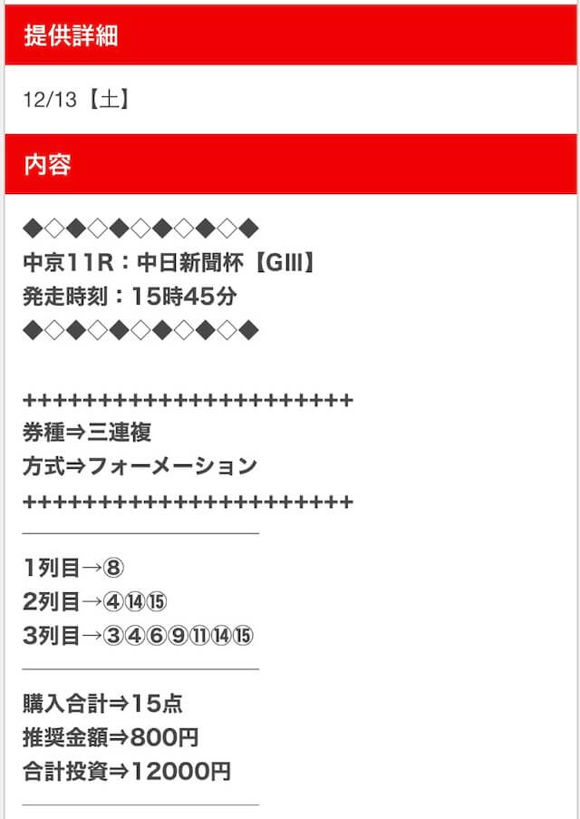 ここで的中を引けなかったら、情報料金と馬券代合わせて77,000円のマイナス収支になるところでしたが、お見事。