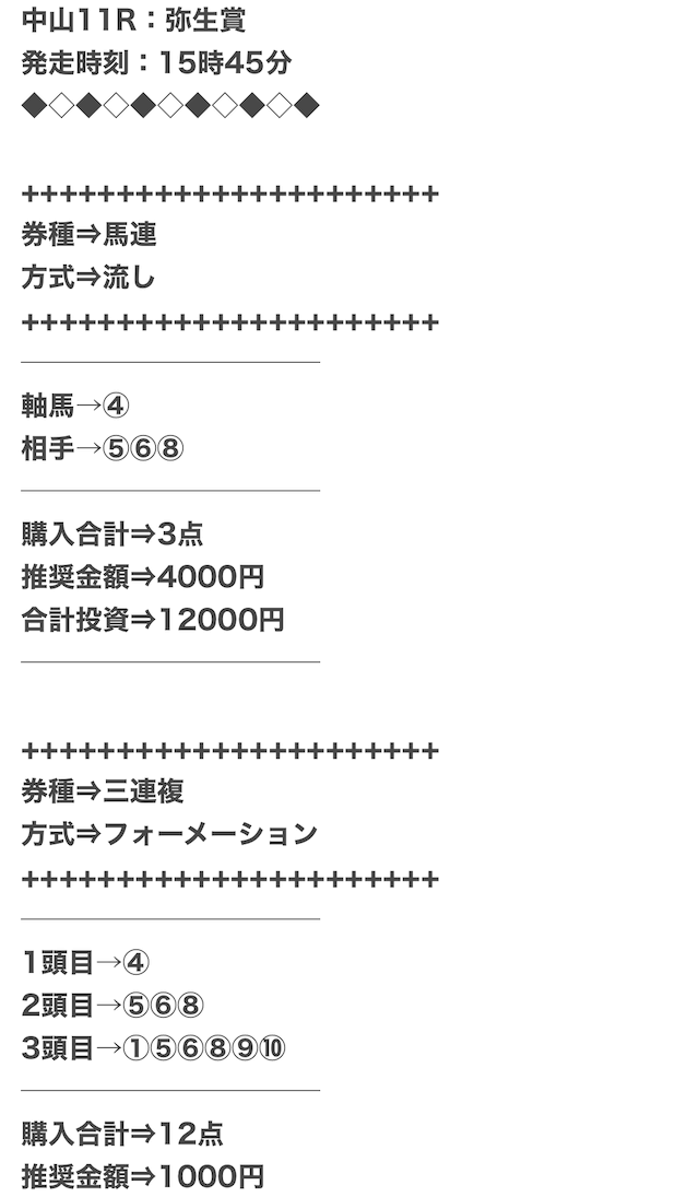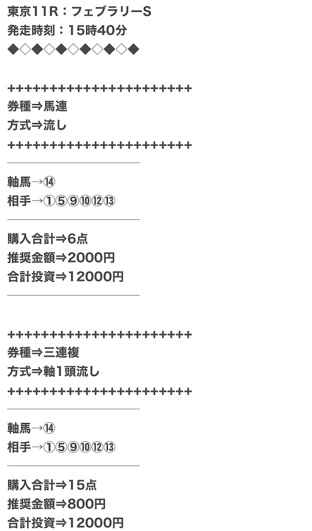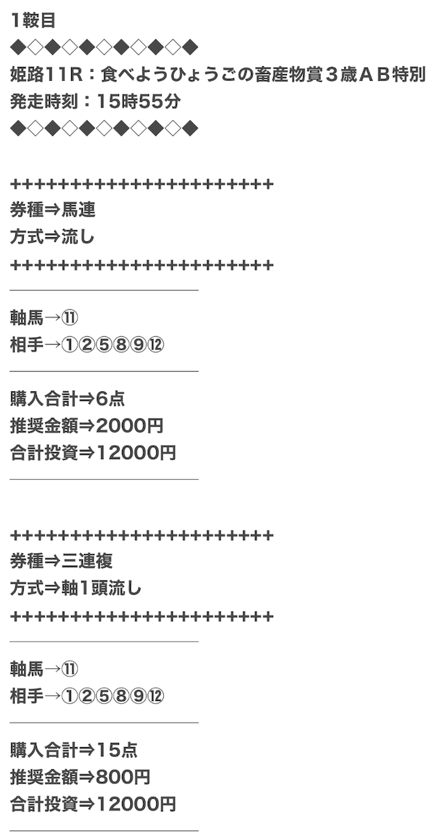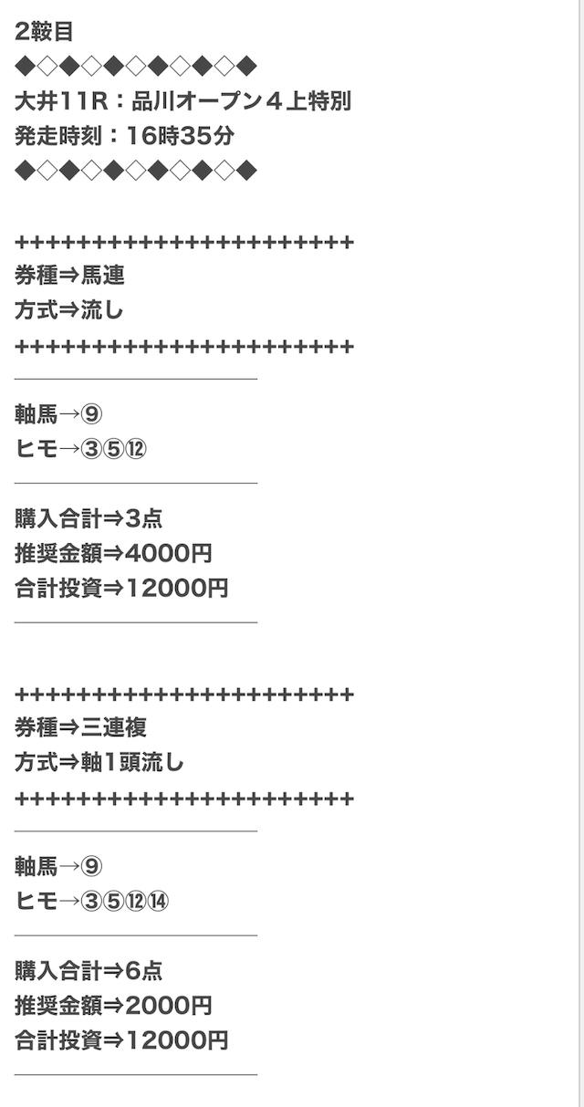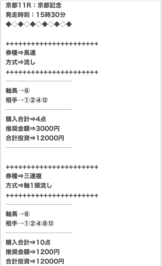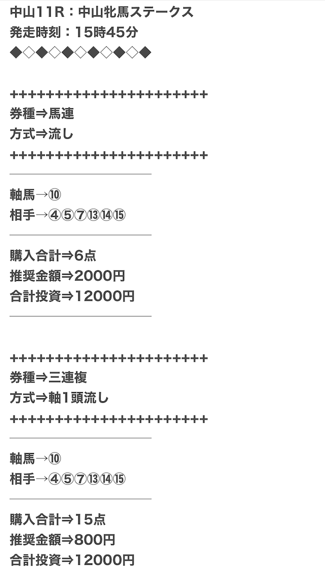 実際に公開された買い目がこちらになります。