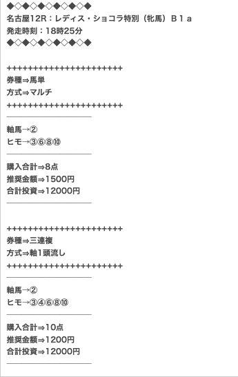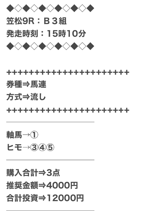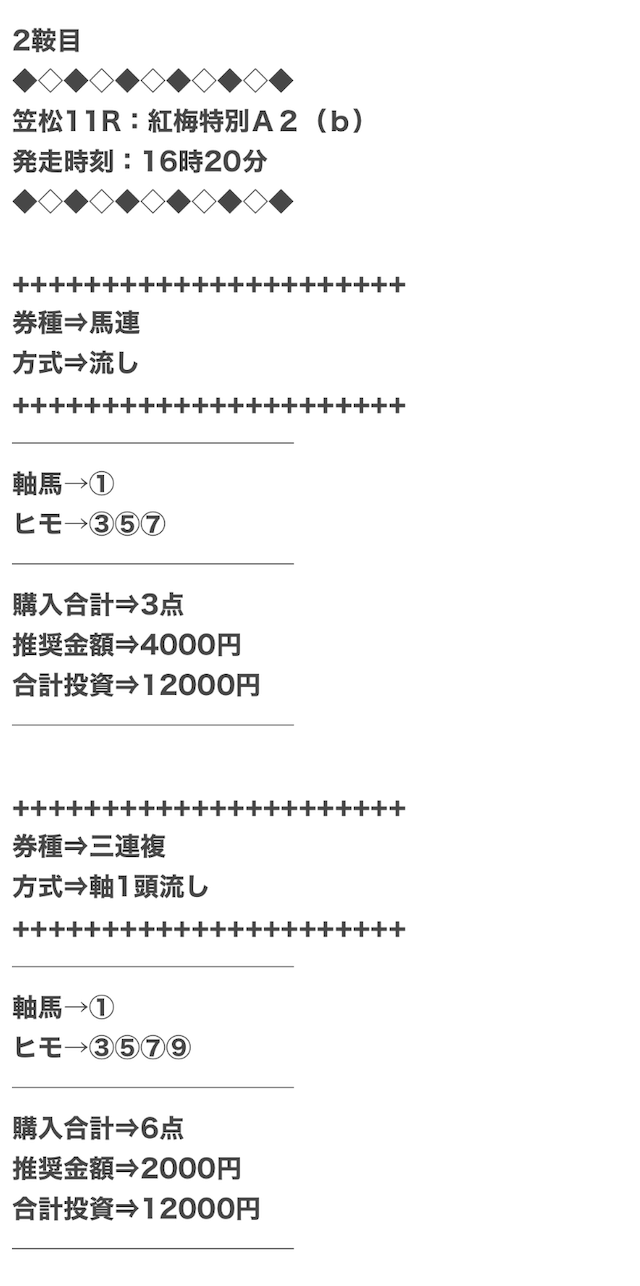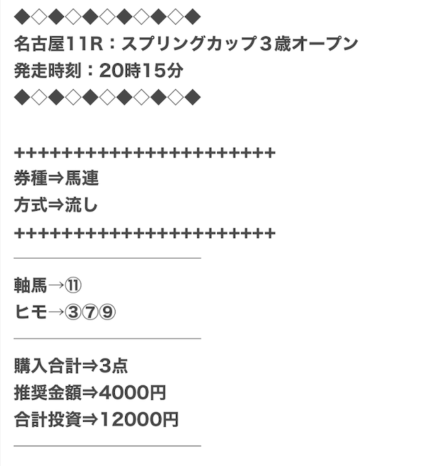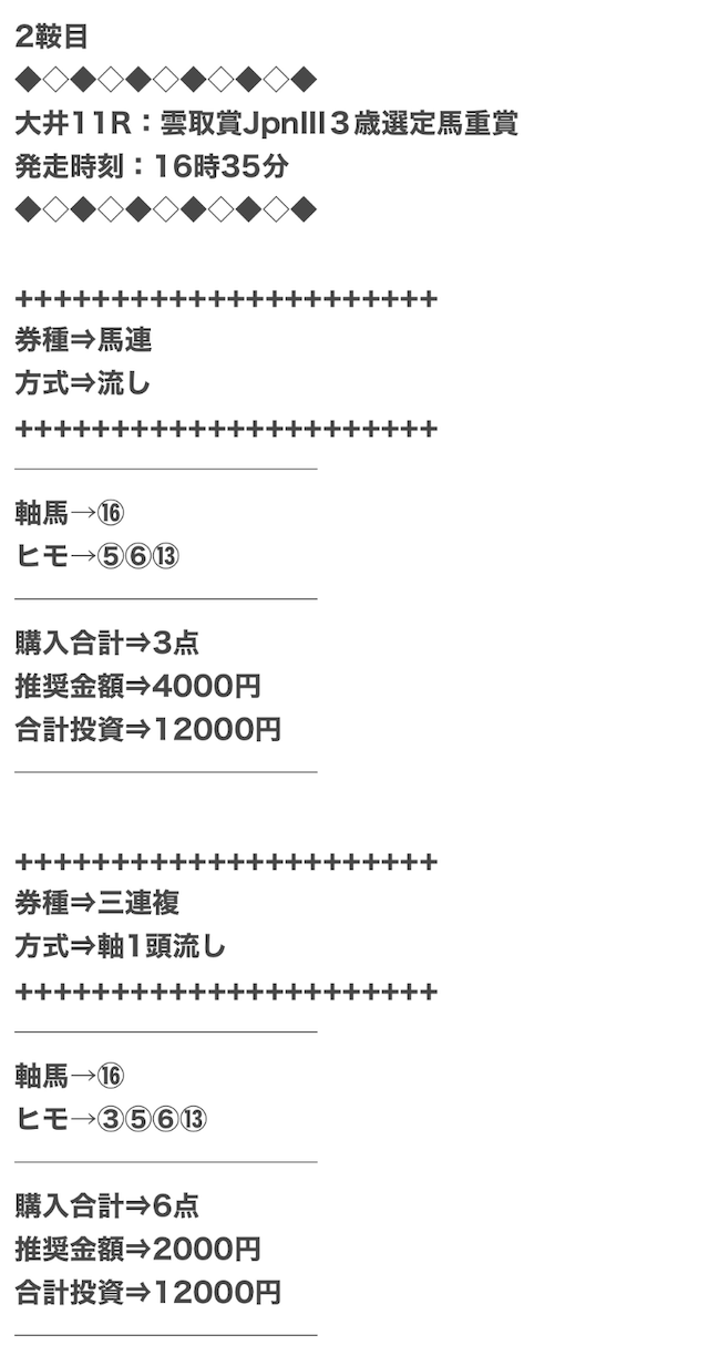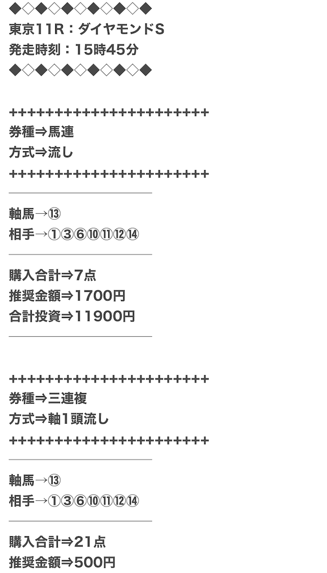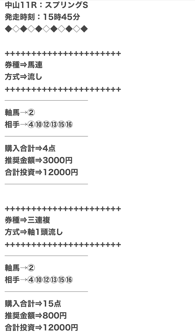 実際に公開された買い目がこちらになります。