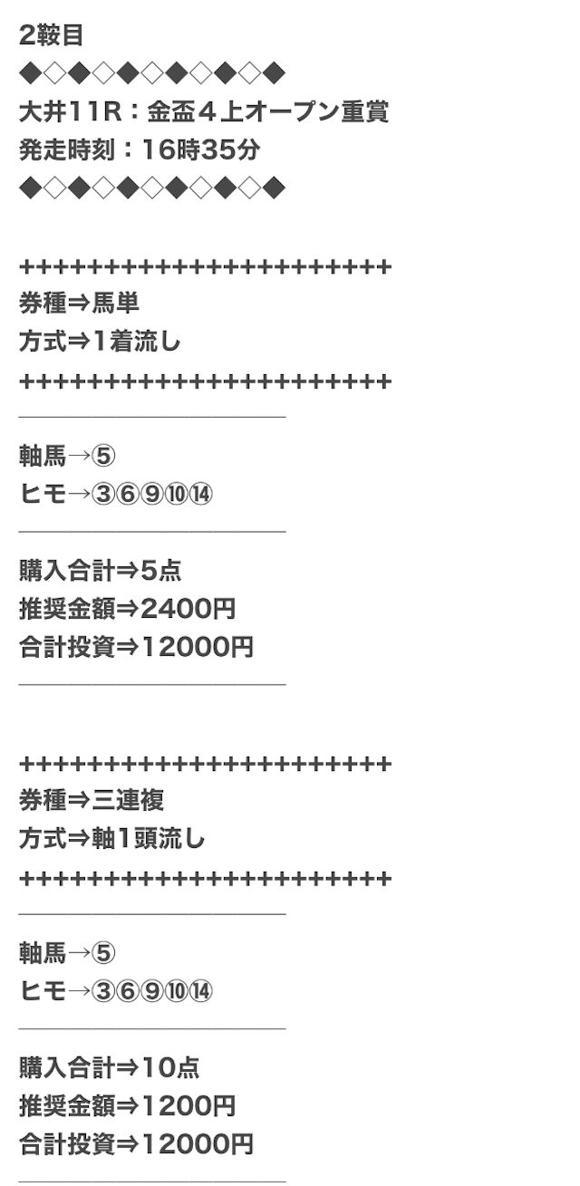 割引頻繁にされていそうだし、やすい情報に手を出すくらいなら銀鞍以上の予想で狙いに行く方が良い気がします!!!