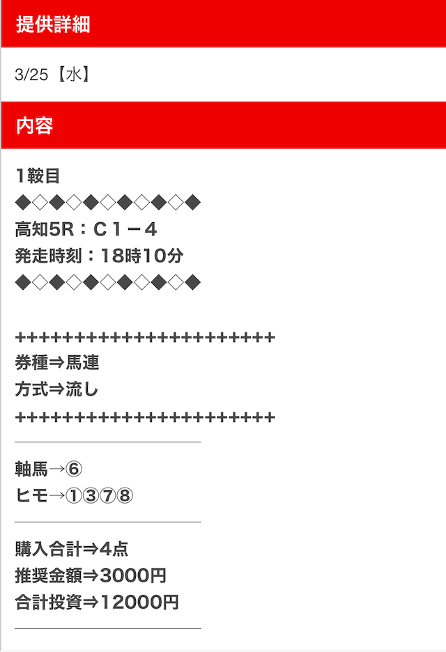 穴馬チャンネル25の有料予想一覧