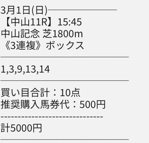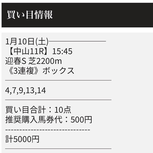 いくら割引が適用されたからとはいえ、情報料金も決して安く無いので必ず的中させて欲しい所・・・