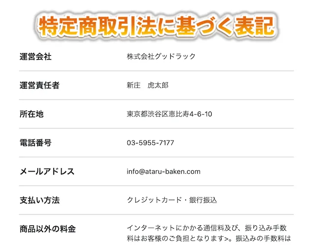 | メールアドレス | info@ataru-baken.com |