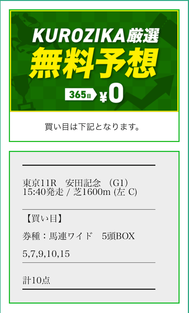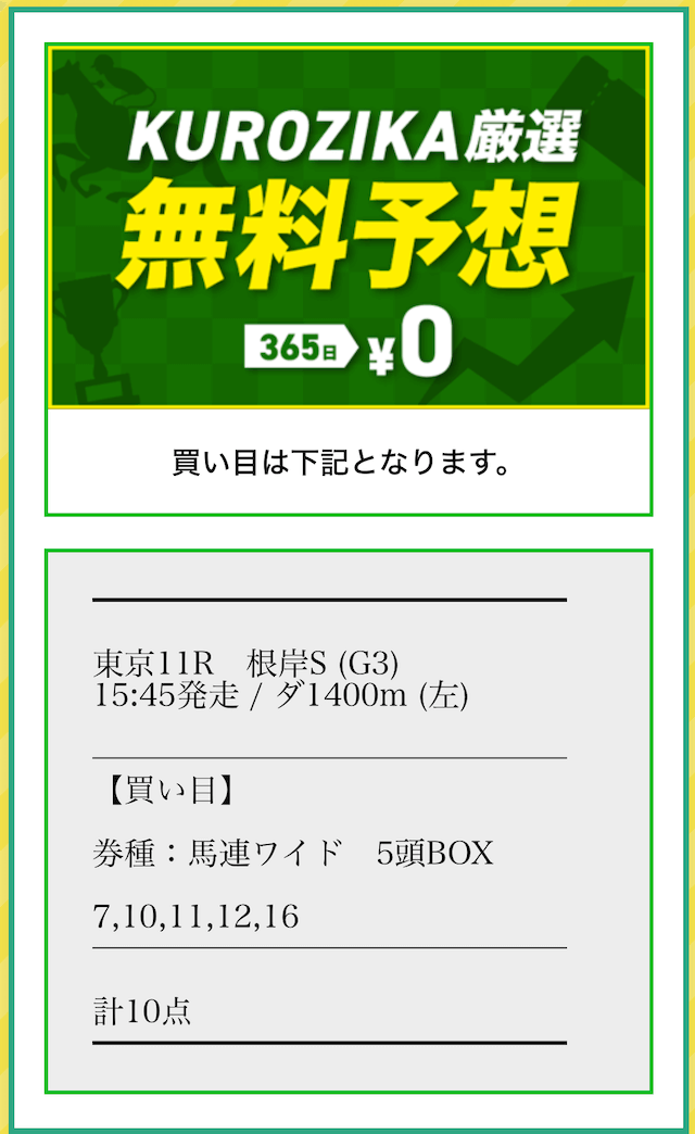 無料予想が毎日公開だから逃すのはちょっと悔しいな笑