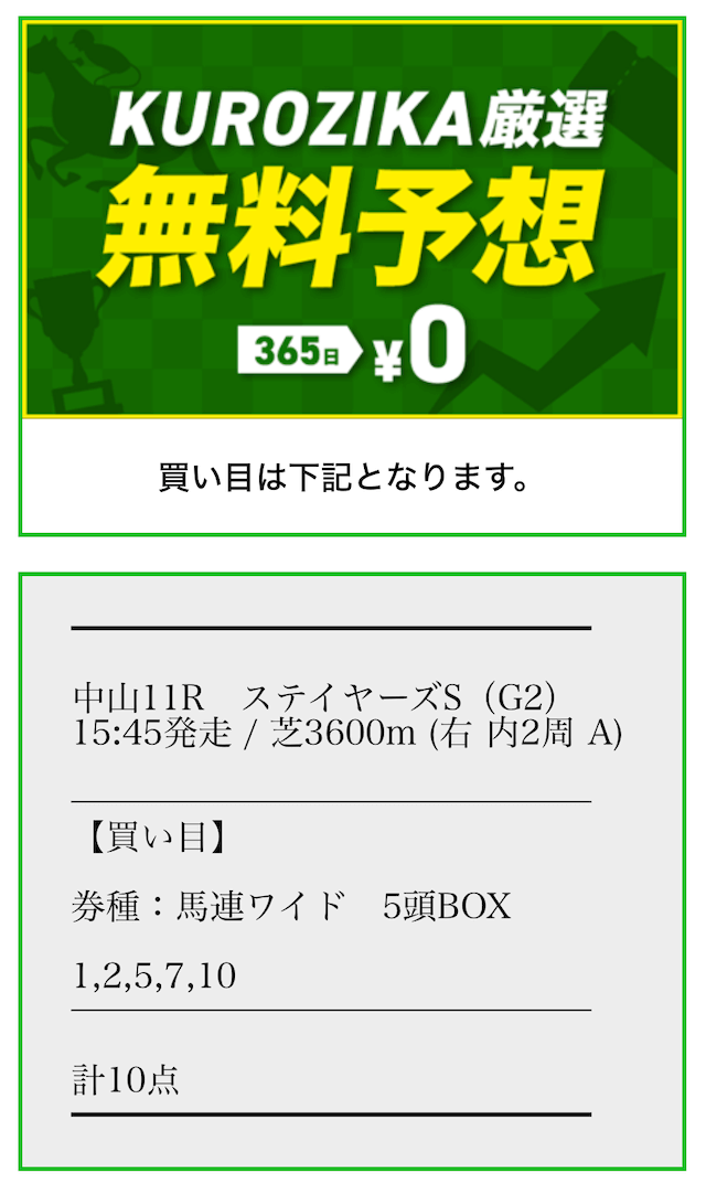 ゆえに無料予想にはそこまで力を入れないため、あくまでお試し的なコンテンツ。