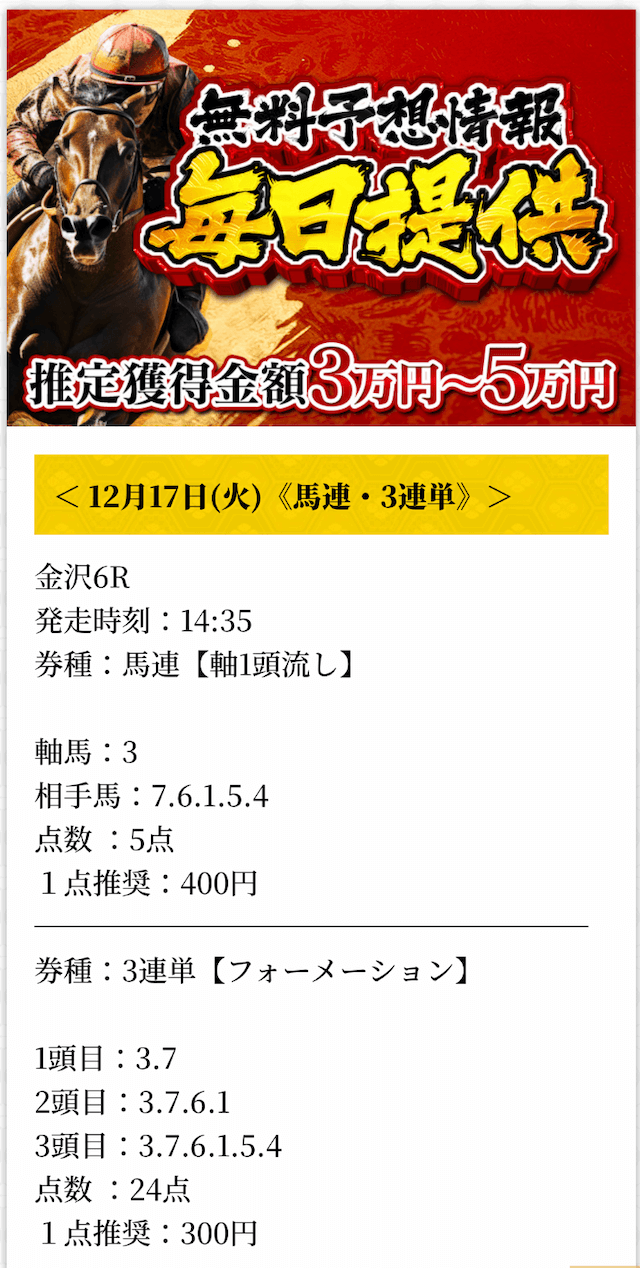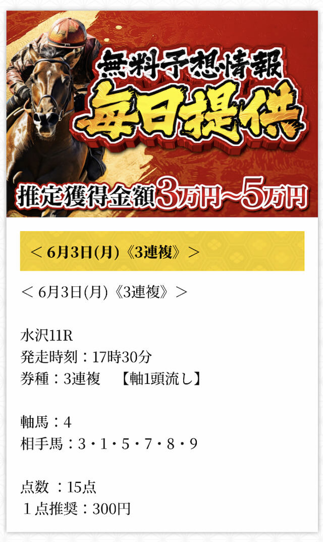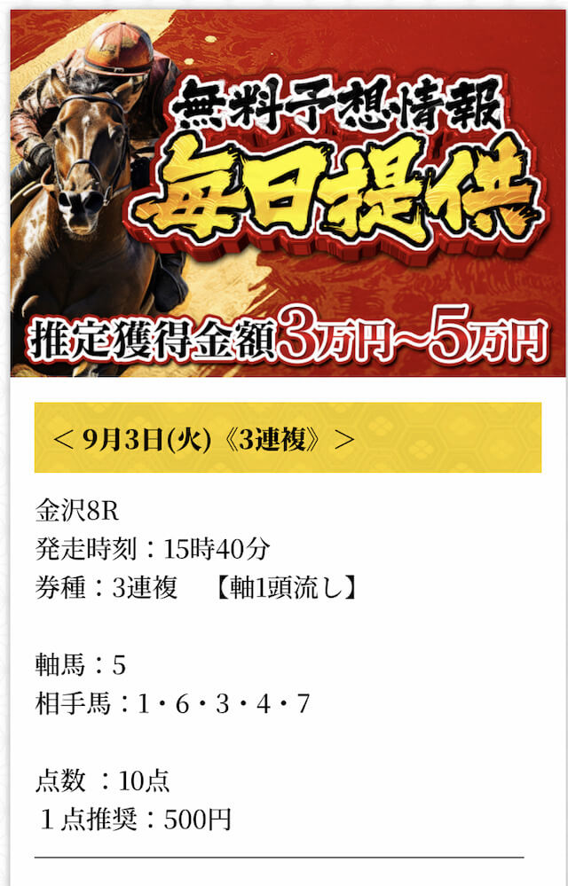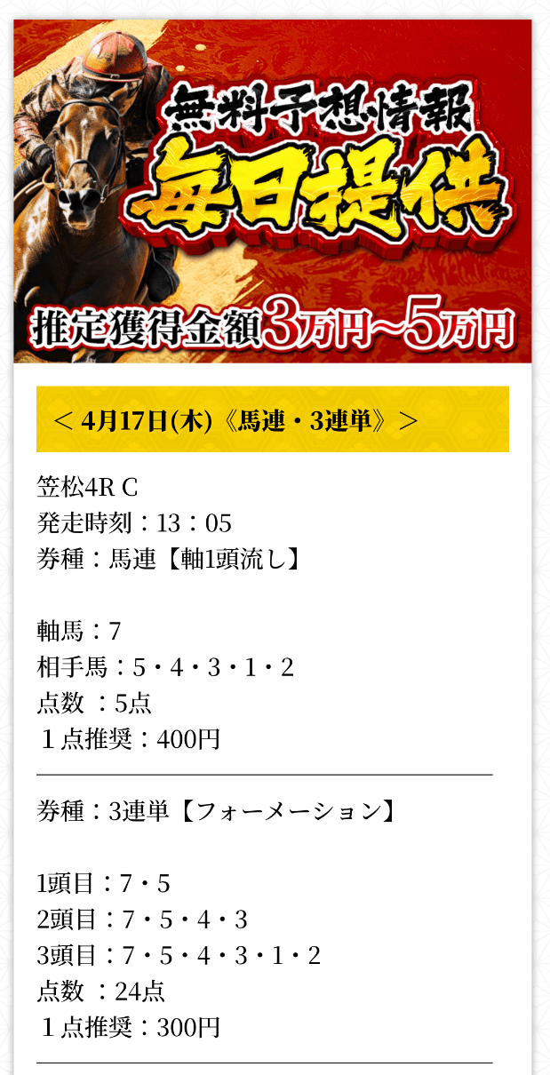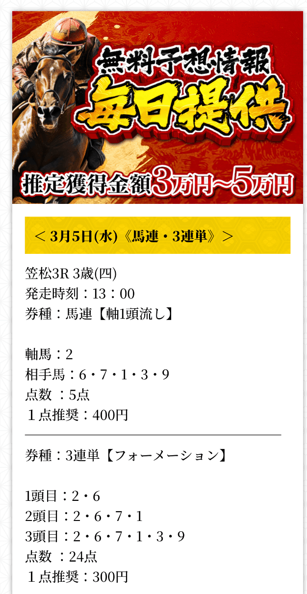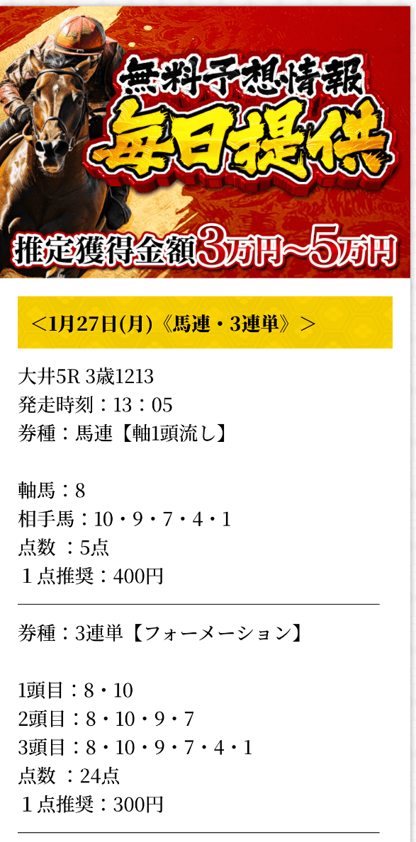 これだけの予想を35,000円で購入できるのは、かなりコスパが良いと言えるでしょう。