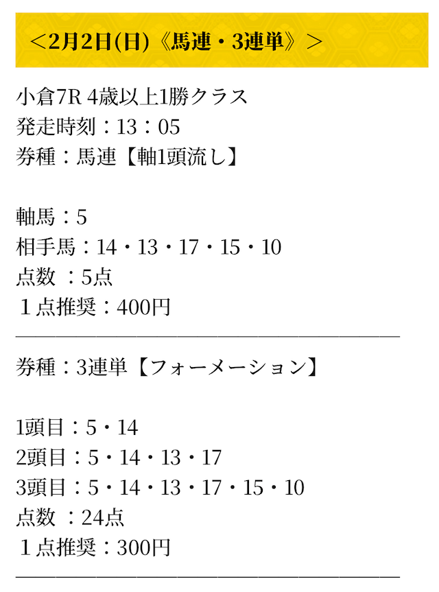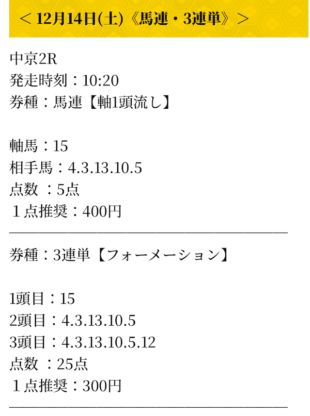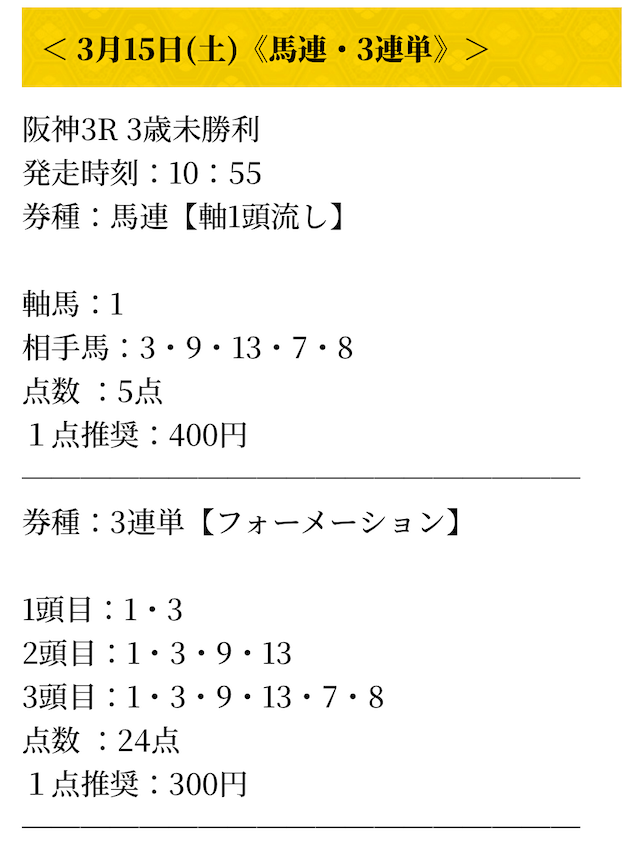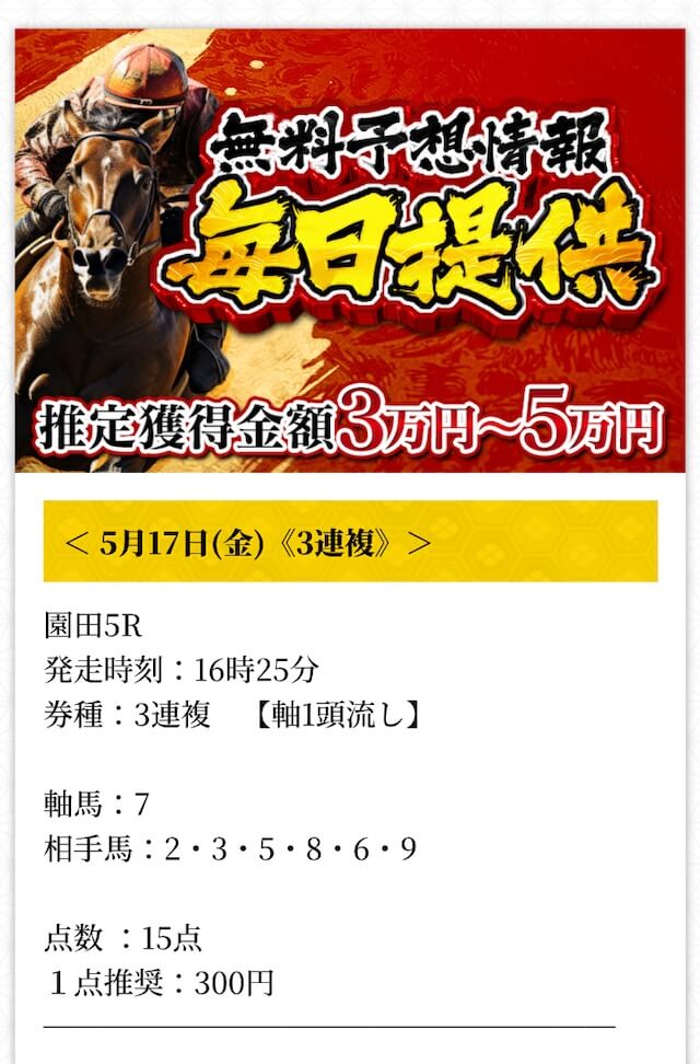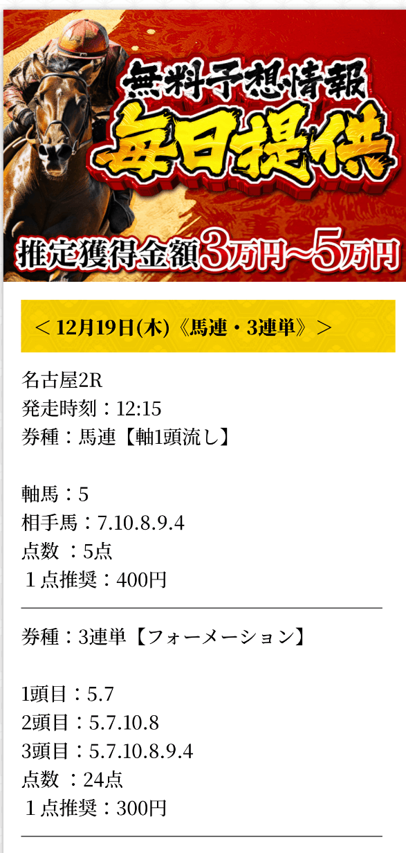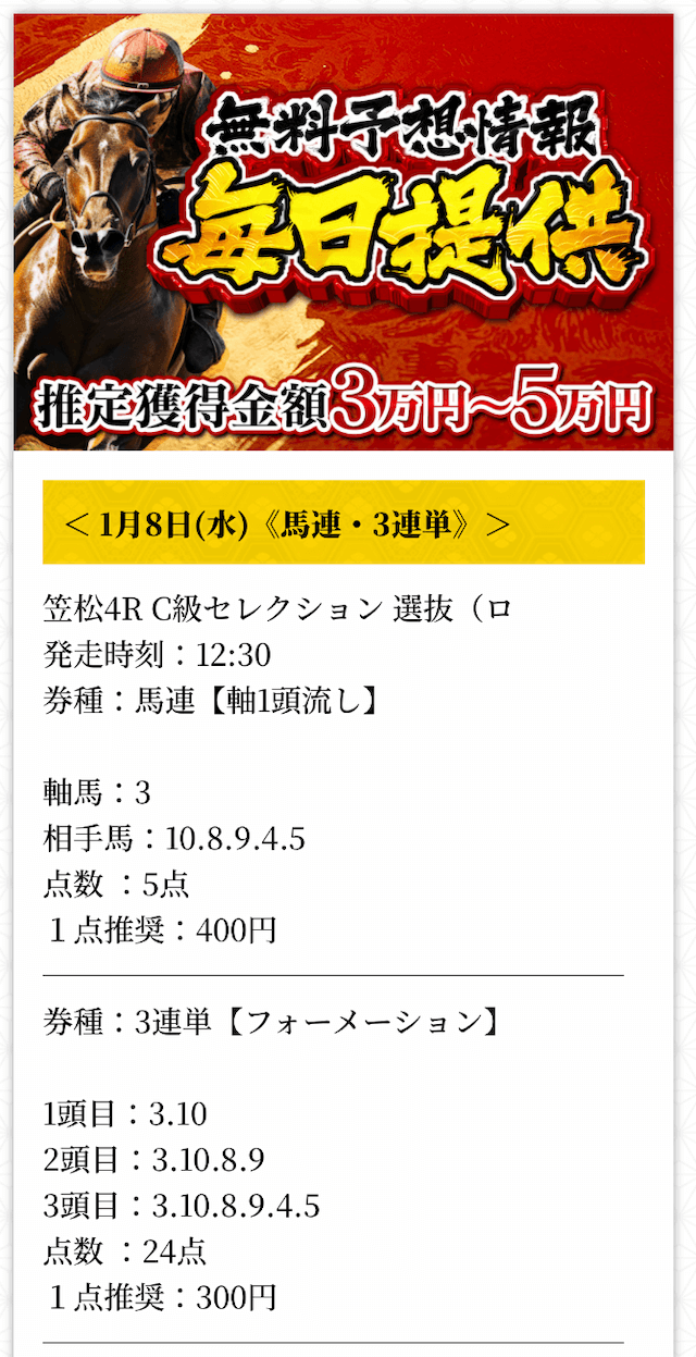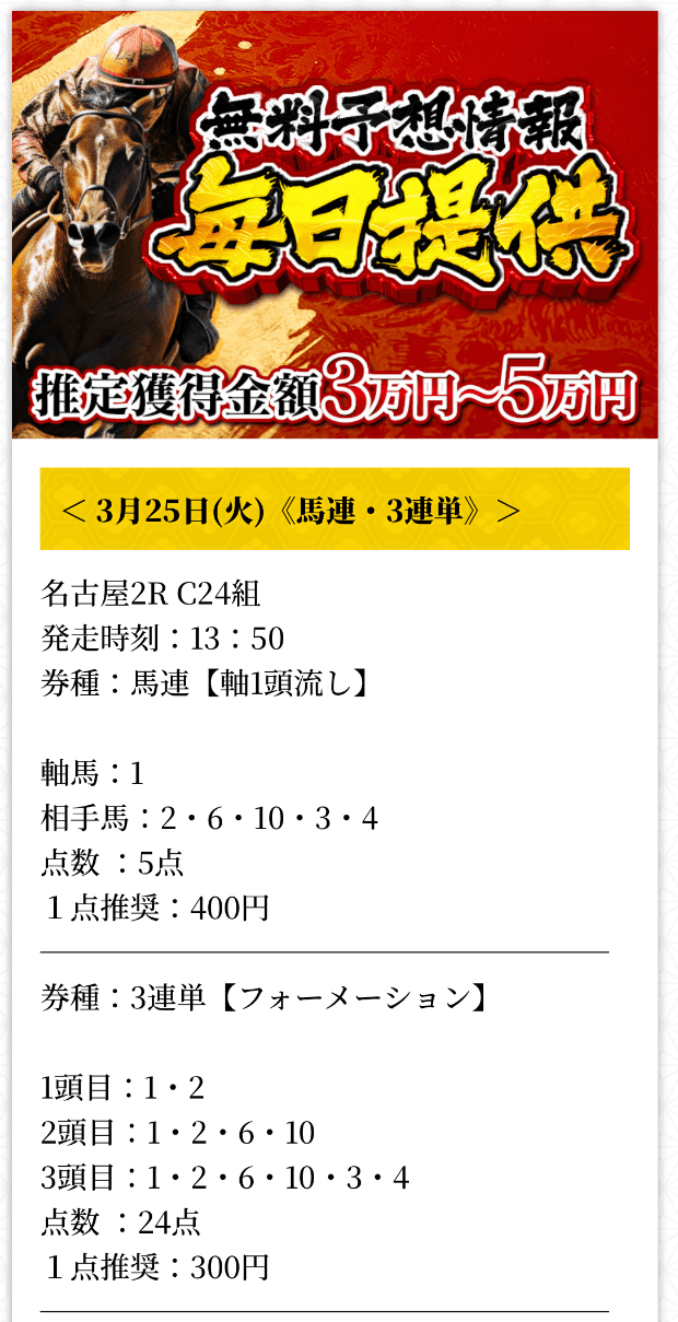 これだけの予想を35,000円で購入できるのは、かなりコスパが良いと言えるでしょう。