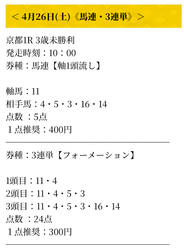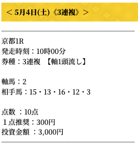 2戦目は、2024年4月21日開催の京都11Rに参加します。