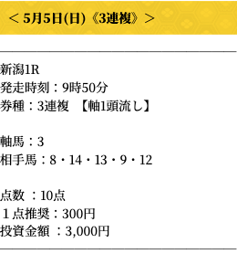 相手にも穴馬を半数含めており、中々攻めた買い目となっています。