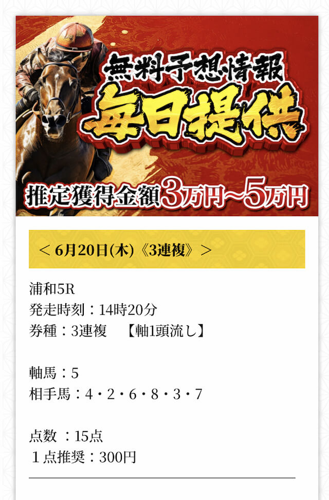 ここからは、いよいよ競馬予想サイトの顔となる有料予想に参加していきます。