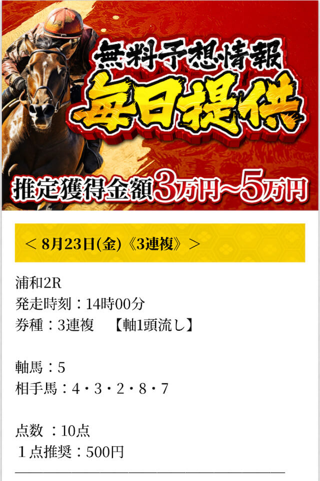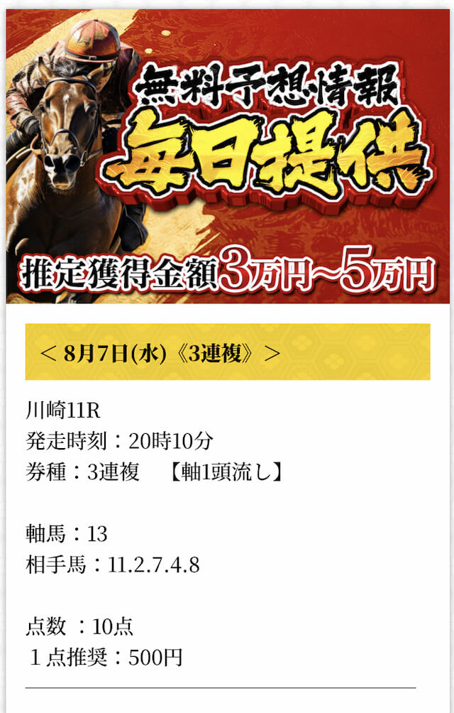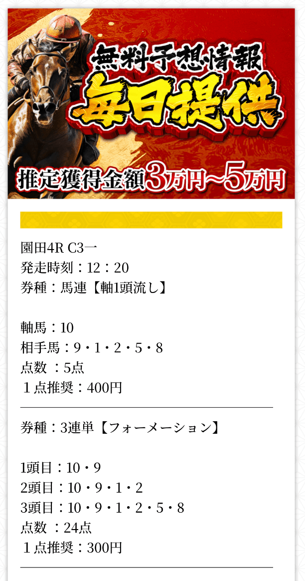 有料予想が本命の予想であり、無料予想は当たらないのが普通ということを覚えておいてください。