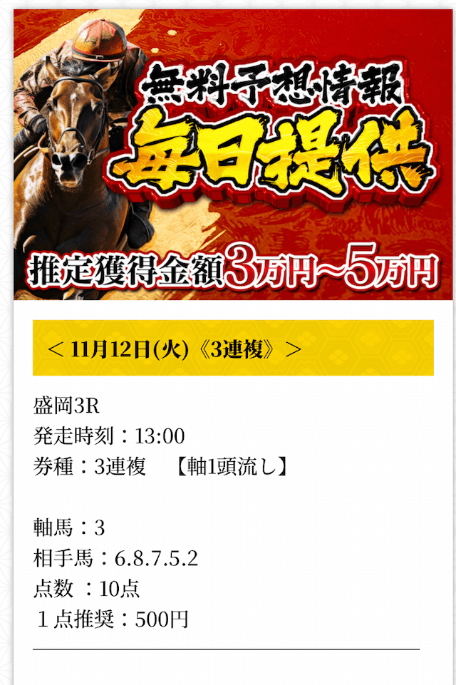 無料の予想に比べて的中率が高く、特に高回収率の会場では利益を上げやすいとの声が多いです。