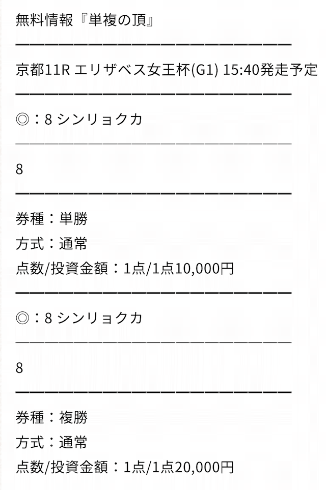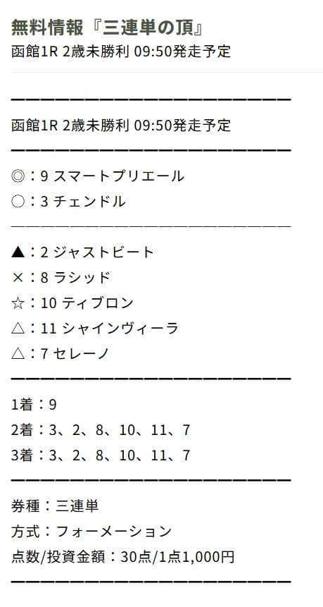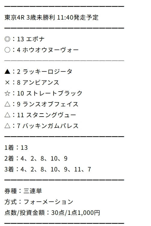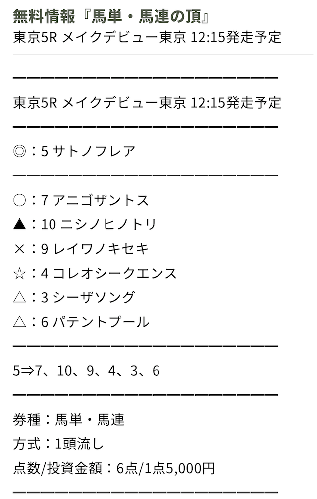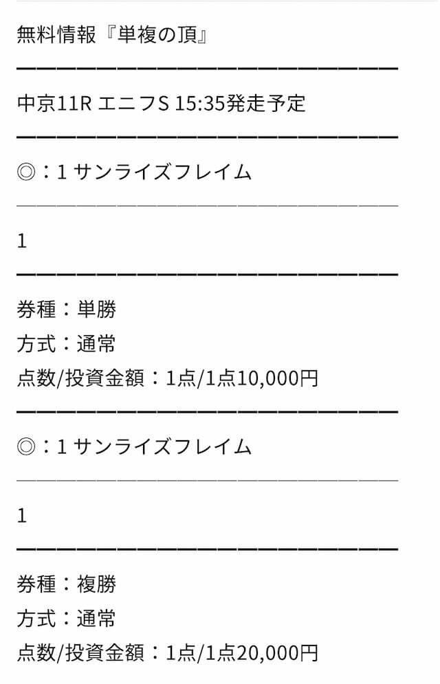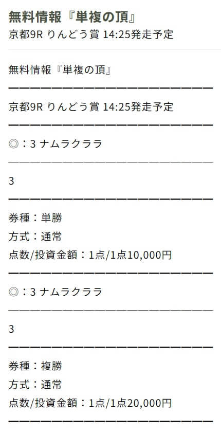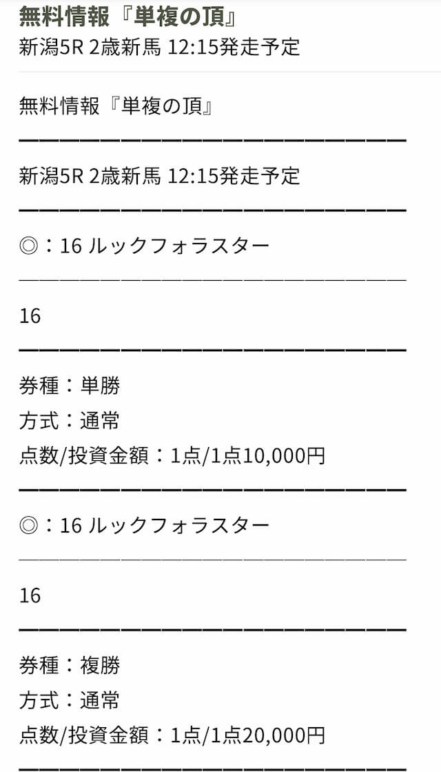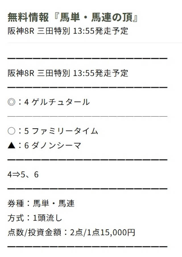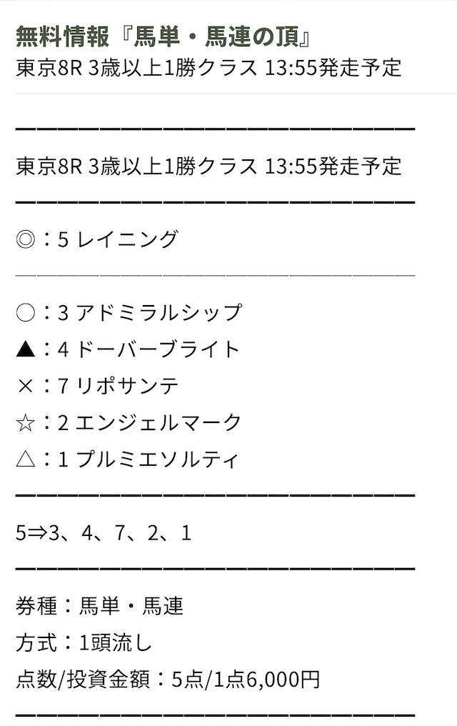 一応当たることは当たるんだけど、ほとんどがトリガミで、プラスになる気配がまったくない。配当も笑っちゃうくらい低くいレベル。馬券代だけがどんどん消えていく感じ。ハッキリ言って、時間もお金も無駄にしただけでした。おすすめできません。