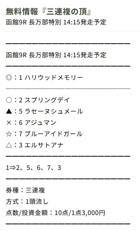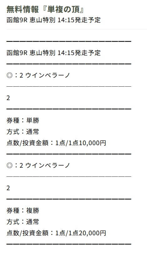 それは無料予想は「登録者を集めるためのお試しコンテンツ」にすぎないということです。。