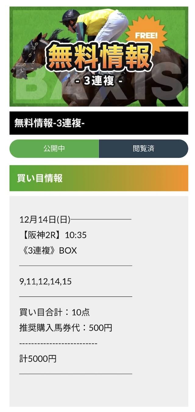 もしかしたら、バクシスの無料予想は他とは違うレベルかもしれません。