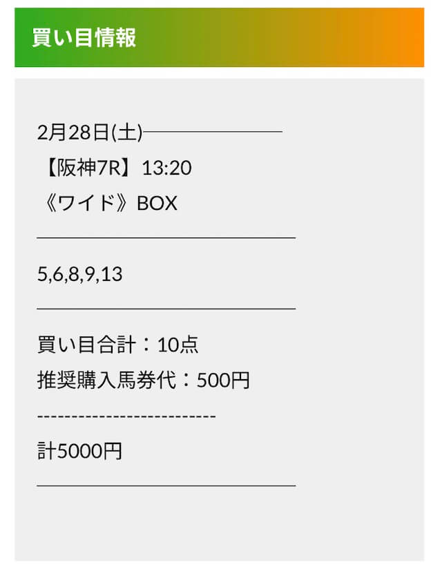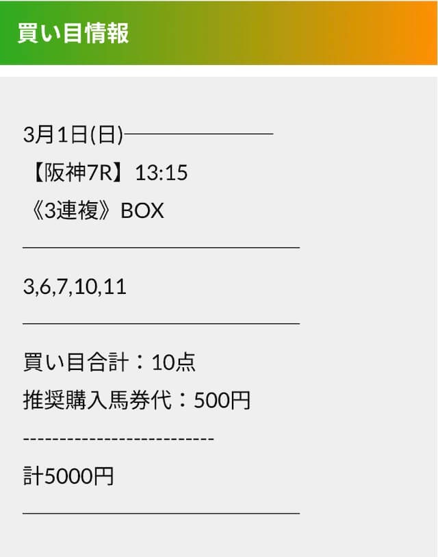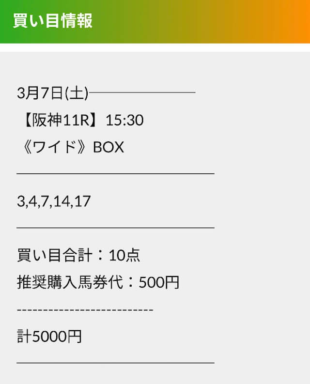実際に公開された買い目はこちらです。