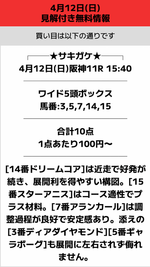 利益でいうと1万くらいで、無料予想でこれだけ当たったのは初めてでした。