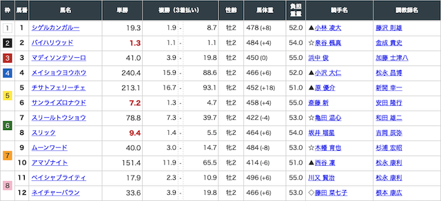 | ⑧ | スリック | 9.4倍 | 3番人気 |