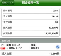 - 馬券代:1点300円 計10,800円