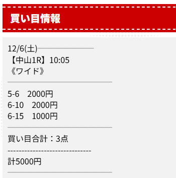 | 2025/12/06/ 中山 | | 5,000円 | 5,800円 | +800円 |