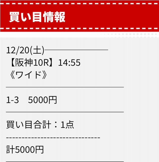 | 2025/12/20/ 阪神 | | 5,000円 | 6,000円 | +1,000円 |