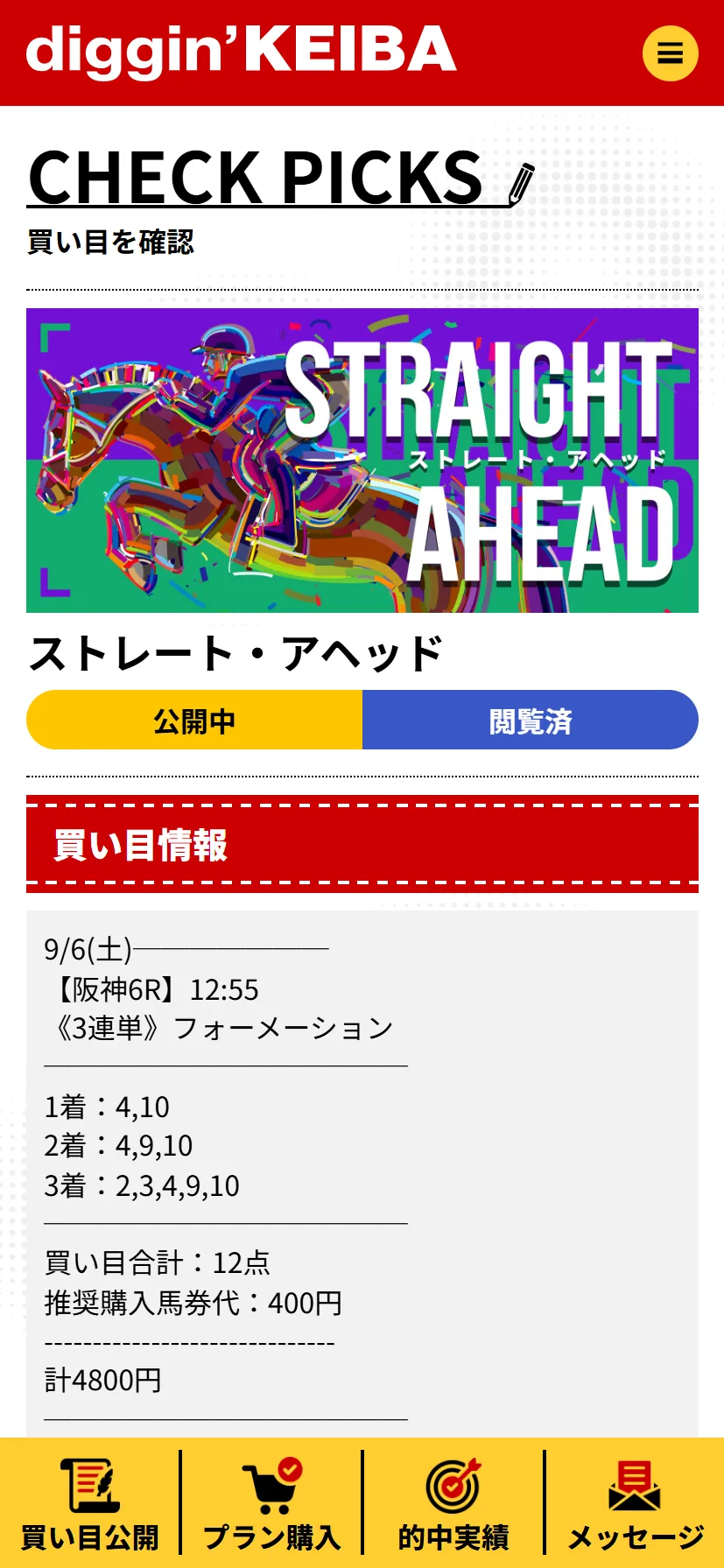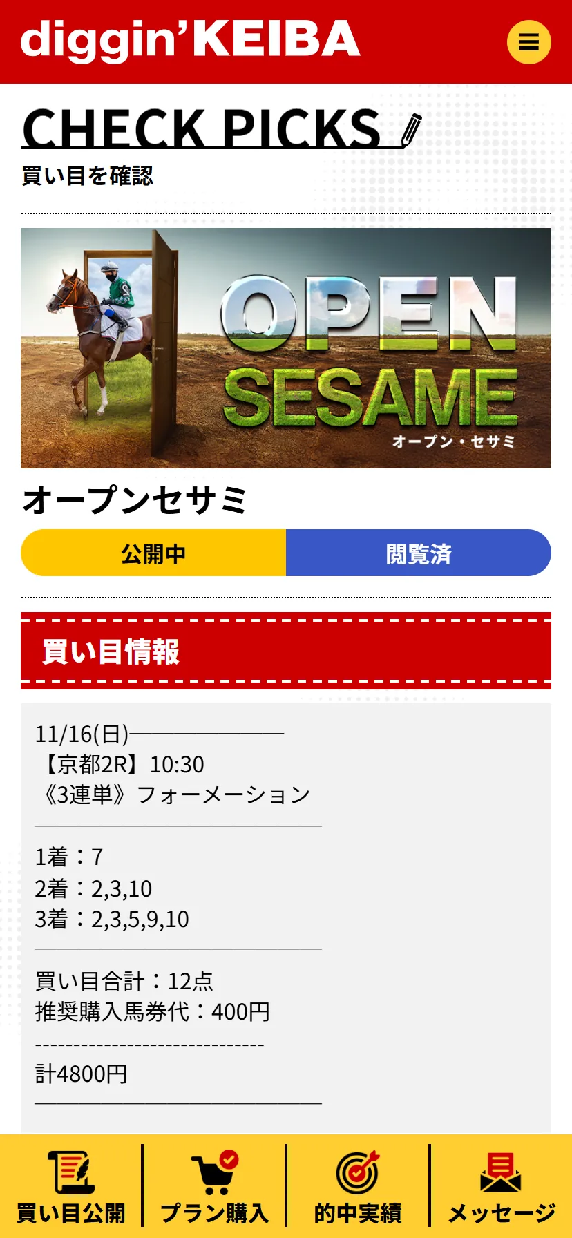 予想は中央競馬の開催に合わせて公開され、主に「三連複」と「ワイド」の券種で構成。