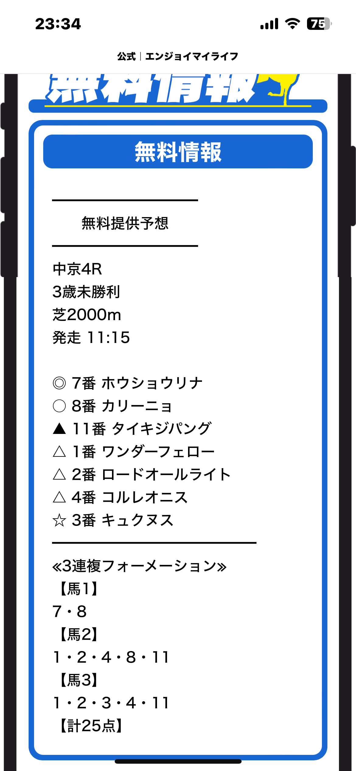 エンジョイマイライフの無料予想で馬券を買ってみた!