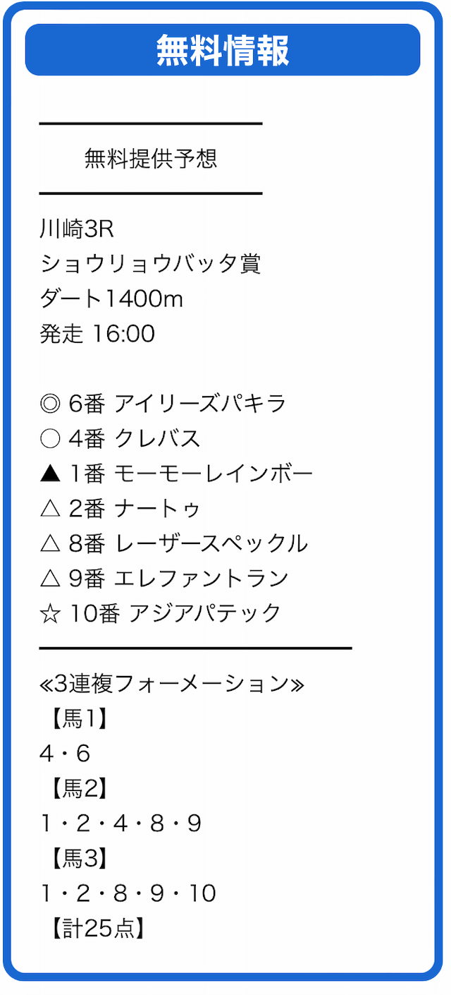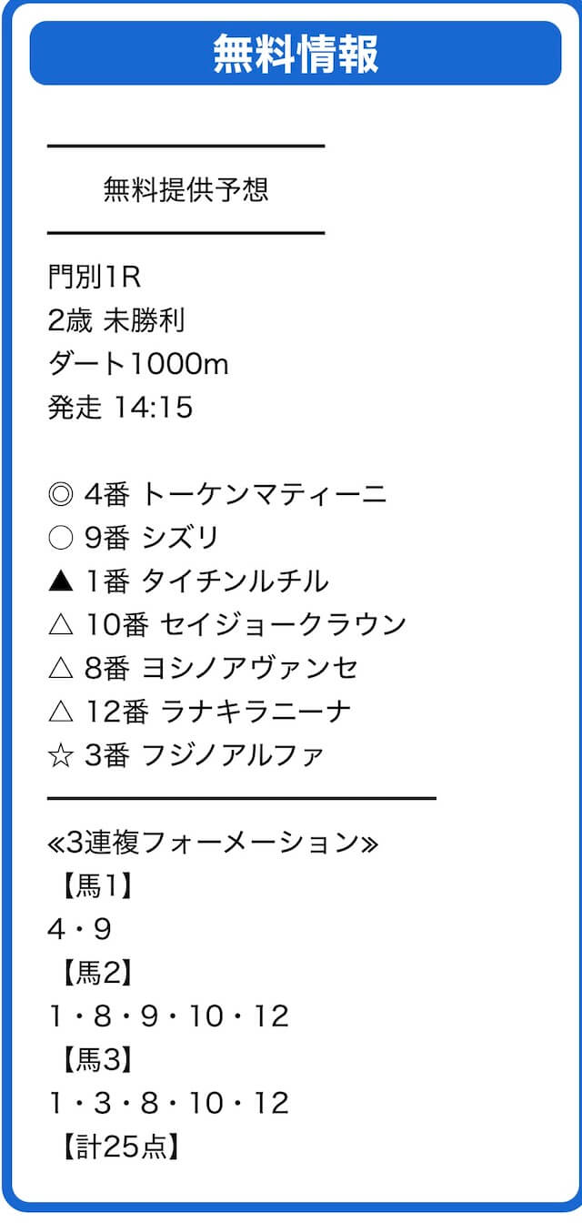 無料予想ありがとう!