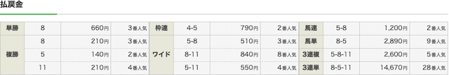 軸馬は1番人気と5番人気、相手には上位人気と穴馬をバランスの良い選出。
