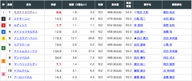 今レースは新馬戦という事で、事前オッズがあまりあてになりません。