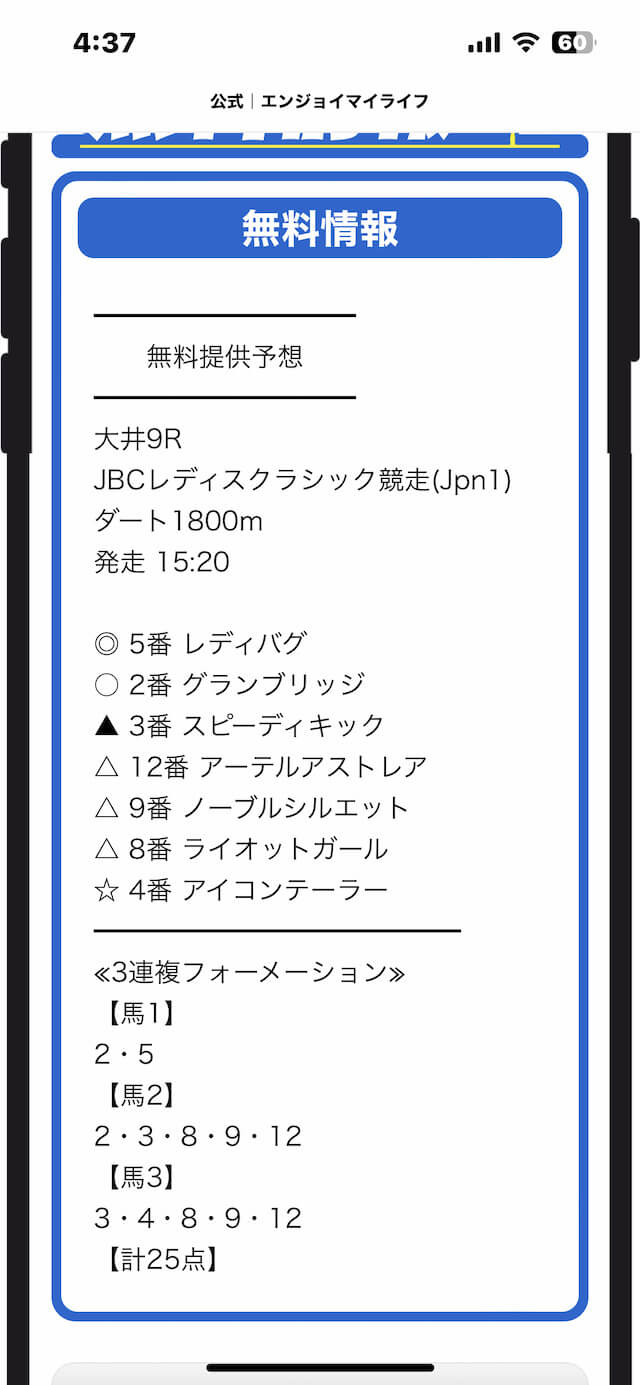 エンジョイマイライフの有料予想を実際に買ってみた!情報料金を支払う価値はある?