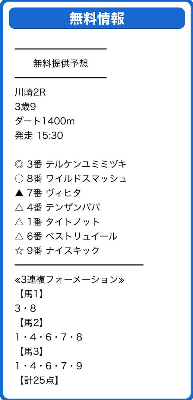 - 全ての無料予想に参加しているから分かる今日の競馬で当たる無料予想