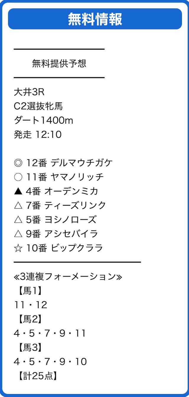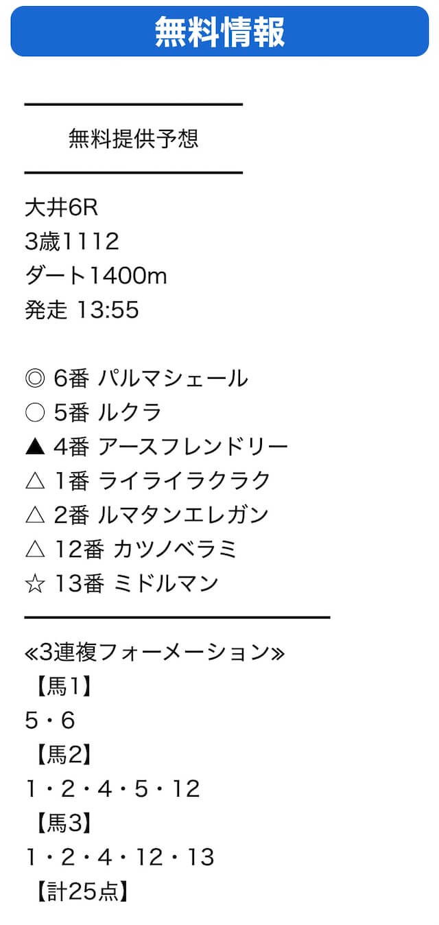 オトナの競馬は、その後も無料予想に継続的に参加しています。