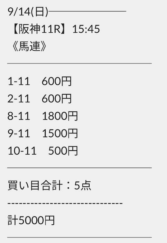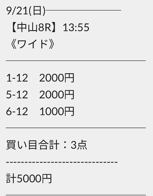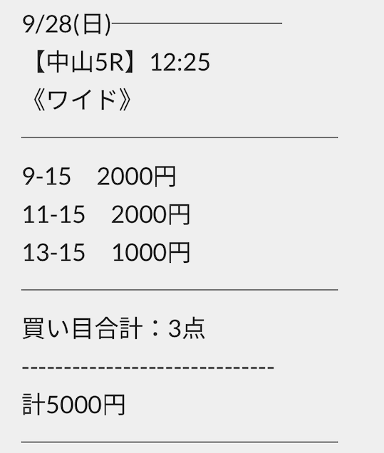 ’24/09/14 中山11R | ソレイユ 三連単 | ◯ 237.8倍 | +135,940円 | 49,500円 4,800円 | 190,240円 |