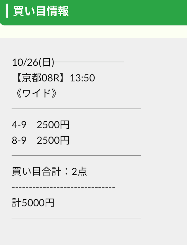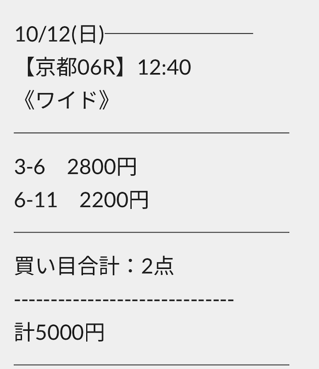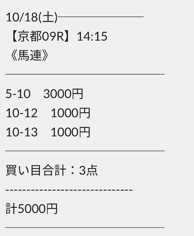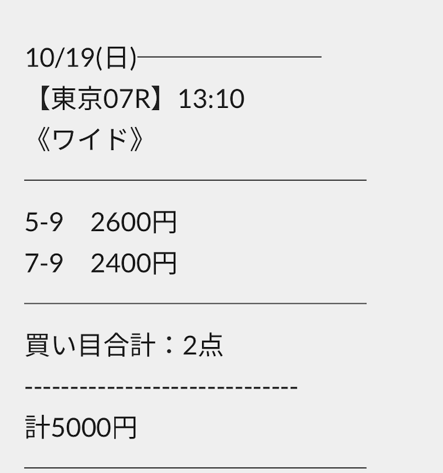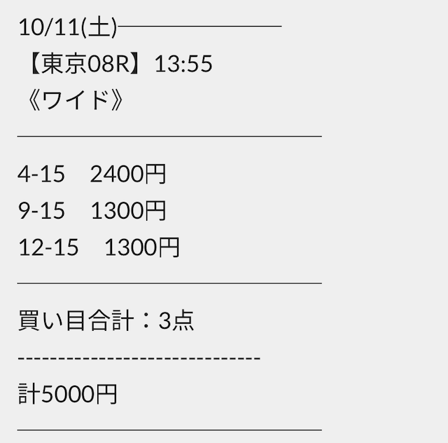 ただ、馬券代は合計5,000円と中々高額です。