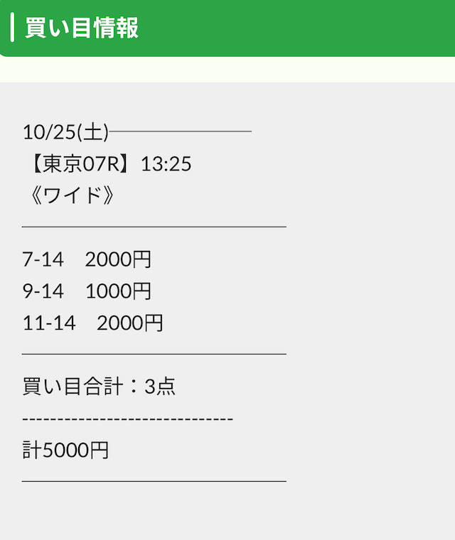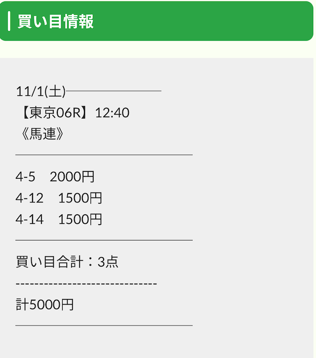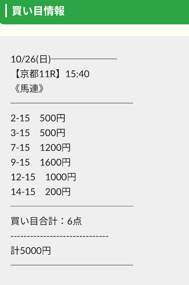 公開された買い目は以下の通りです。