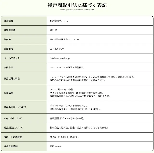 | メールアドレス | info@every-keiba.jp |