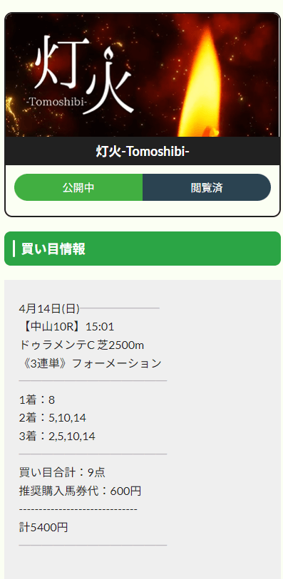 有料予想の当たる感じで予想を公開してくれんなら凄いんだけどね