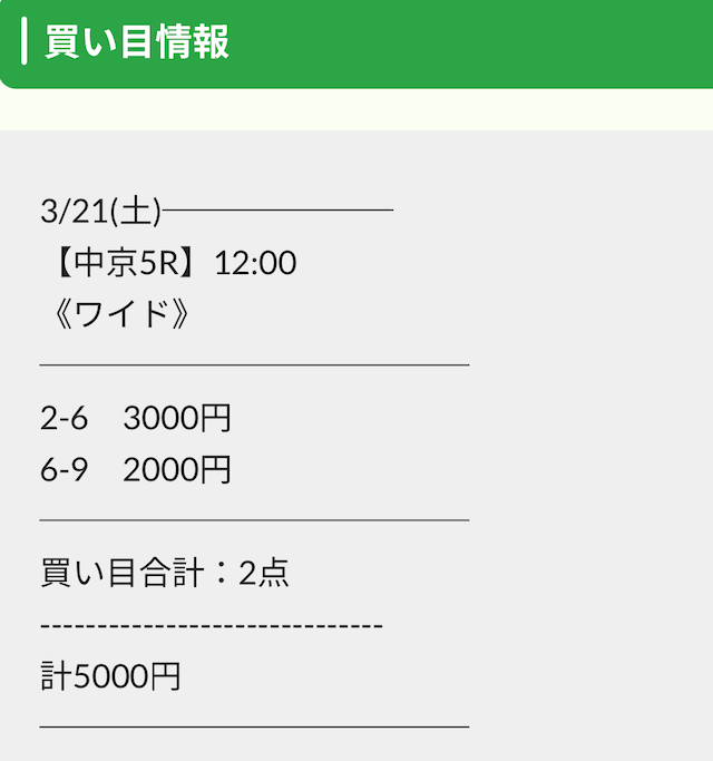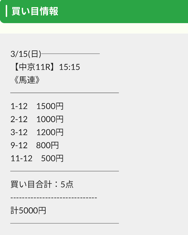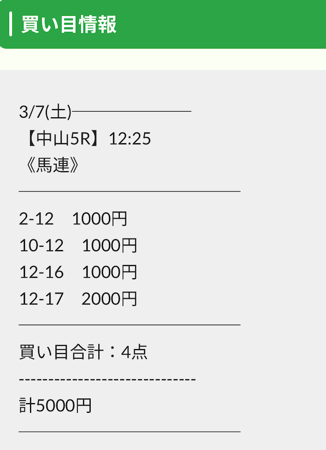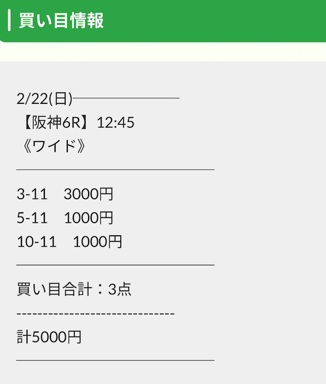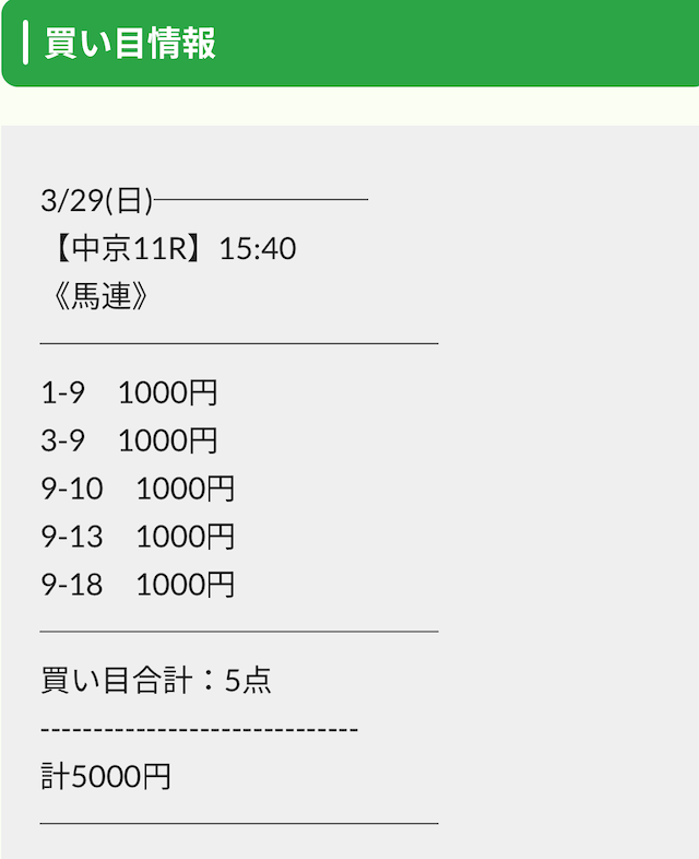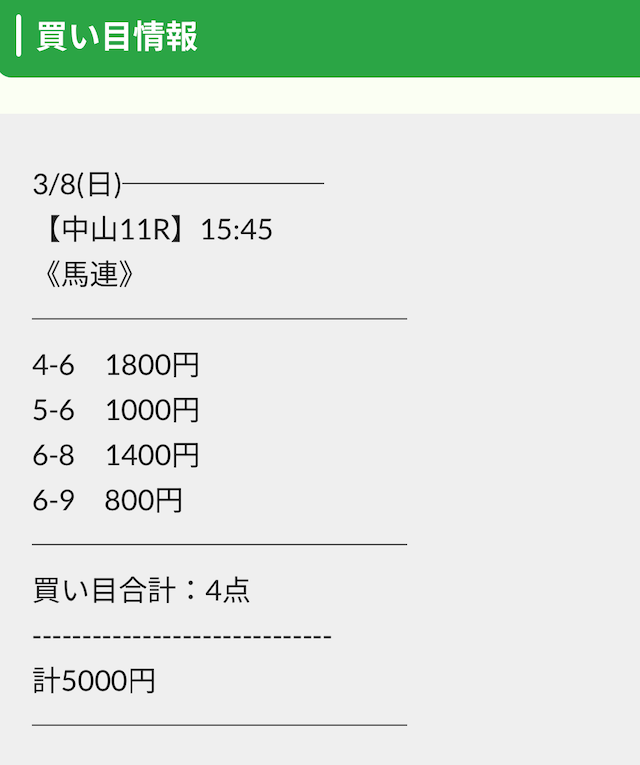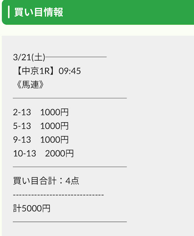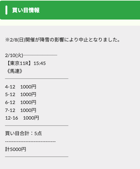 実際に公開された買い目は以下の通りです。