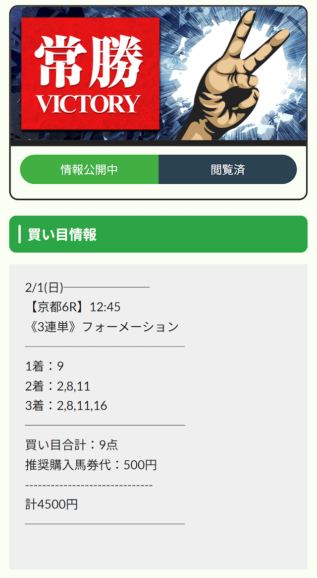 無料予想で見事に的中しました!