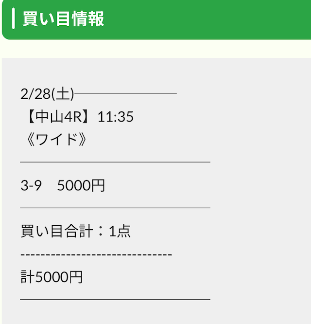 | 2026/02/28/ 中山 | | 5,000円 | 6,500円 | +1,500円 |