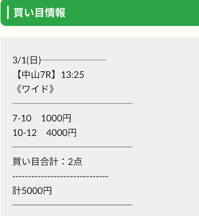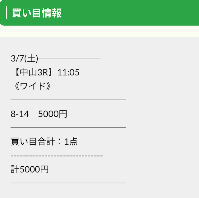 | 2026/03/07/ 中山 | | 5,000円 | 7,000円 | +2,000円 |