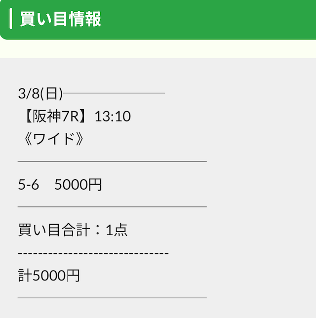 | 2026/03/08/ 阪神 | | 5,000円 | 10,000円 | +5,000円 |