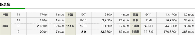 大穴の14番人気フランドルブリエは残念ながら馬券に絡まず。