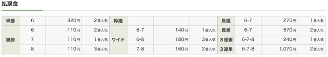 人気上位の馬に加えて、8番人気・10番人気の馬も買い目に選びました。