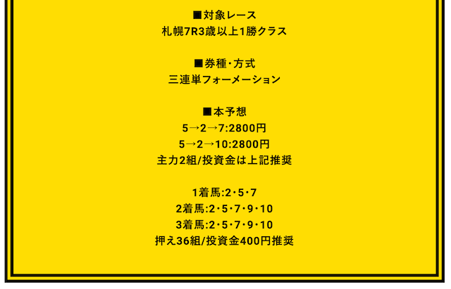 - 対象レース:札幌10R コスモス賞