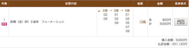こちらは3番人気を軸に、相手には5頭を選びました。